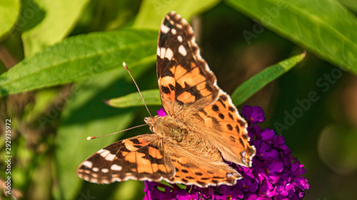 Obraz premium Macro of a beautiful cosmopolitan butterfly on a flower