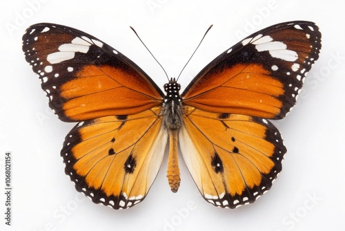 Obraz premium Macro of butterfly isolated on white background, Danaus chrysippus, top view