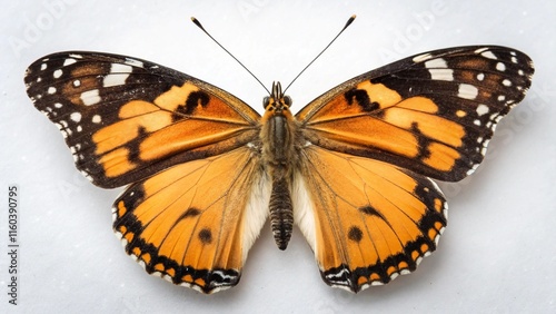 Obraz premium Macro of butterfly isolated on white background, Danaus chrysippus, top view