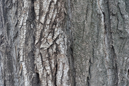 Fototapeta premium Macro of dry grey bark of cottonwood poplar tree