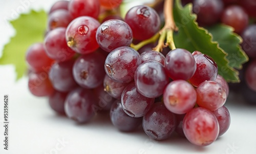 Fototapeta premium macro of fresh grapes with water droplets isolated with white color as...