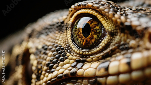 © Muliana, Fototapeta premium Macro of lizard eye showing skin and scale details