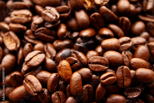 © taffpixture, Fototapeta premium Macro of roasted coffee beans