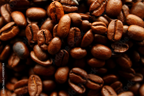 © taffpixture, Naklejka premium Macro of roasted coffee beans