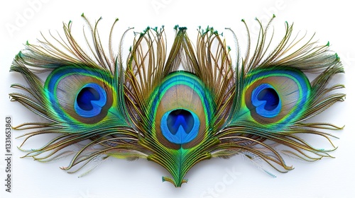 © Ghulam, Obraz premium Macro peacock feather,Peacock Feather,Beautiful exotic peacock feather on white background with copy space