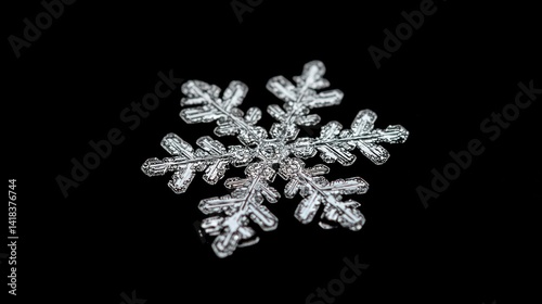 © Akstem, Fototapeta premium Macro photo of a detailed snowflake with intricate, crystalline structure.