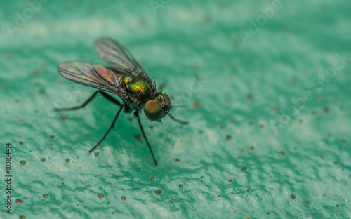 © akilrollerowan, Fototapeta premium Macro photo of a Dolichopodidae fly, insect