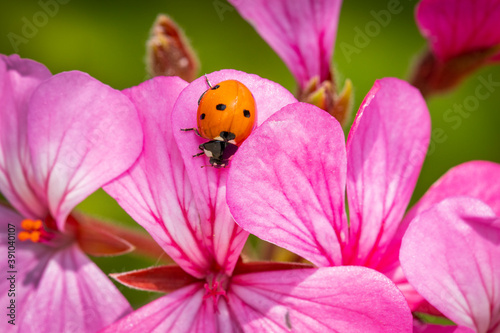 © Milton, Fototapeta premium Macro photo of Ladybug on a pink flower
