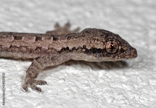 Naklejka premium Macro Photo of Mediterranean House Gecko on White Floor