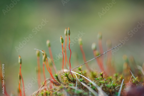 © dmitriydanilov62, Fototapeta premium Macro photo of moss in spring forest with beautiful bokeh