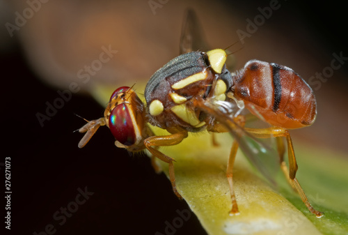 © backiris, Naklejka premium Macro Photo of Wasp Mimic Fly on Leaf