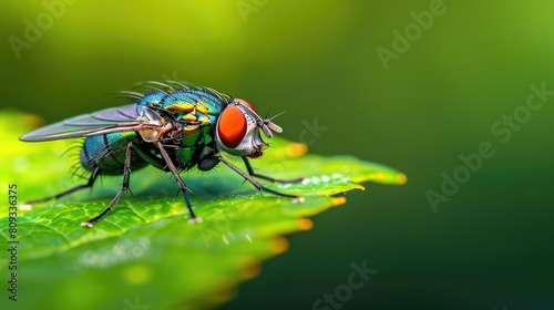 Naklejka premium Macro photograph of a fly resting on a leaf