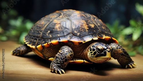 © Ambient Sanctuary, Obraz premium Macro Photograph of a Turtle Showcasing Detailed Shell and Textures