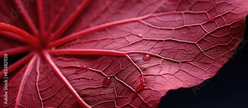 Fototapeta premium Macro photograph of the intricate veins on a blood geranium leaf, with copy space image.