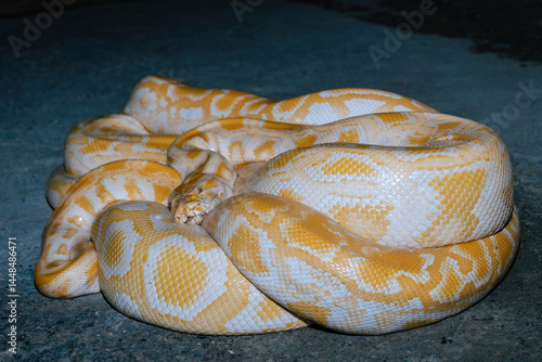 © Jeffrey, Obraz premium Macro photography close up shot of a yellow python