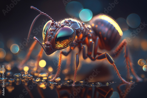 Fototapeta premium Macro photography of an ant with nice bokeh. Generative AI