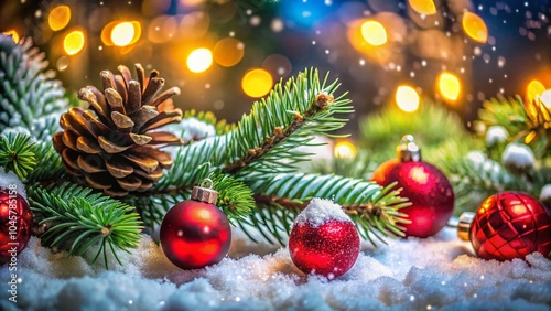 Fototapeta premium Macro Photography of Canada at Christmas: Snowflakes, Pine Cones, and Holiday...