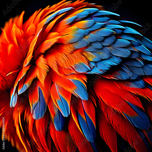 © Ilton Rogerio, Fototapeta premium macro photography of caninde macaw feathers created with generative AI