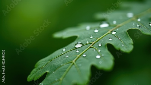 Obraz premium Macro photography of dewdrops on a green oak leaf