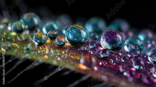 Naklejka premium Macro Photography of Dewdrops on a Leaf