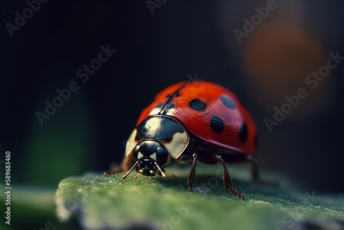 © Hendrikus, Fototapeta premium Macro photography of ladybug. Generative ai