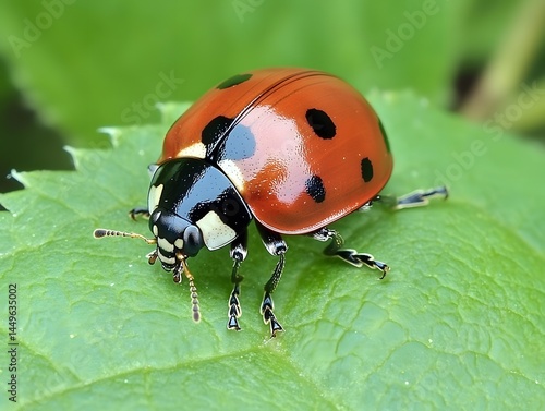 © Yonus, Fototapeta premium Macro Photography of Ladybug on Leaf, Nature Insect Closeup