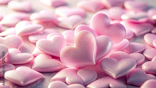 © Caitlin, Fototapeta premium Macro Photography of Pink Heart Shapes on a White Background - Romantic Love Symbols, Sweet Decor, Valentine's Day Inspiration, Close-Up Detail, Soft Colors, Artistic Composition