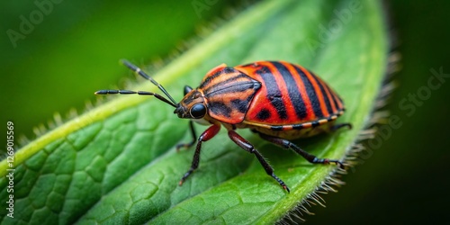 © Danicha, Fototapeta premium Macro Photography: Red and Black Italian Striped Beetle on Leaf
