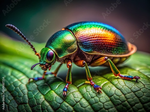 © prapatsorn, Fototapeta premium Macro Photography: Rosemary Beetle on Green Leaf - Low Light Shot