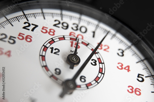 Naklejka premium Macro photography stopwatch with black and red numbers