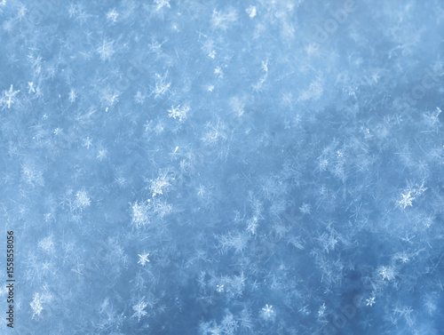 © Serg Zastavkin, Obraz premium Macro photograpy of snowflakes. Background of winter fluffy snow texture.