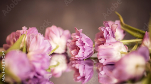 © ketrin, Fototapeta premium macro pink tulips on a light background.