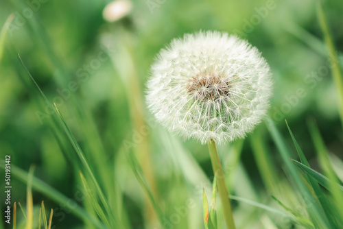 © Nono&Jessi, Fototapeta premium Macro proxy fleur de pissenlit blanche bien garnie et ronde naturelle