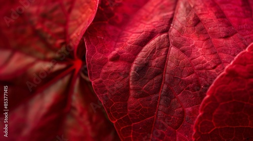Fototapeta premium Macro shot capturing the intricate details of vibrant red flower petals,...