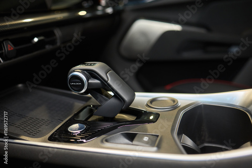 © Евгений Вершинин, Fototapeta premium Macro shot of a car gear lever an essential auto part