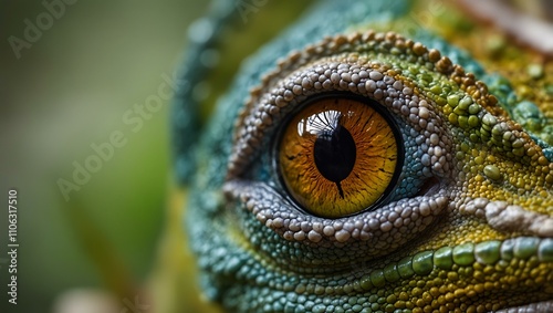 © claudunia, Fototapeta premium Macro shot of a chameleon’s eye.
