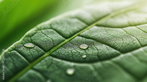© pornchan, Fototapeta premium Macro shot of a fern leaf with intricate patterns of stomata, releasing moisture vapor
