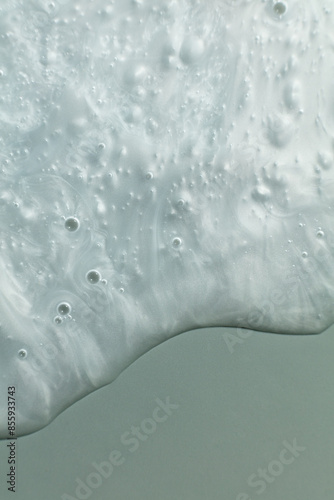 © Pedro, Fototapeta premium Macro shot of a moisturizer's texture showcasing its smooth, glossy surface with visible swirls and bubbles. This detailed close-up highlights the product's creamy and hydrating properties