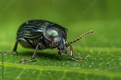 © RTH, Naklejka premium Macro Shot of a Small Insect Capturing Detailed Features and Fine Textures on Green Surface Varient 3