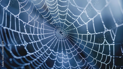© 69, Fototapeta premium Macro shot of a spider's web with dew