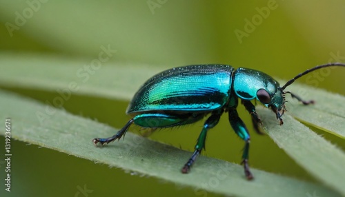 © Designood, Naklejka premium Macro Shot of Beetle Antennae Structure: Metallic-Green Exoskeleton & Sensory Organs