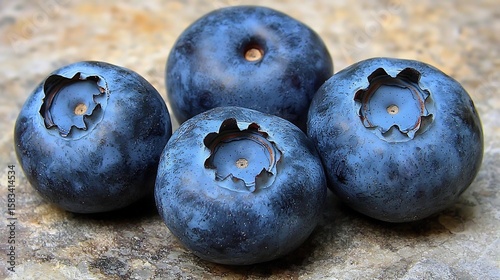 © BinaryBrush, Obraz premium Macro shot of blueberries natural bloom coating and soft shadows