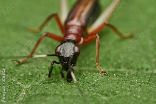 © DiazAragon, Fototapeta premium macro shot of cricket on green leaf