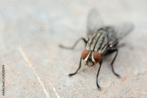 © Achira22, Fototapeta premium Macro shot of fly. Live house fly