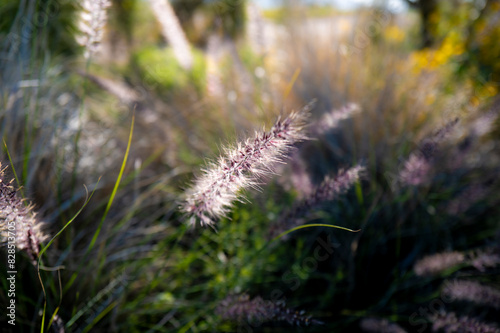 © Wirestock, Obraz premium Macro shot of fuzzy grass in a desert setting with a blurred bokeh effect