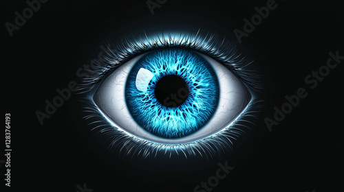 © NongKirana, Obraz premium macro shot of human eye with bright blue iris and detailed texture