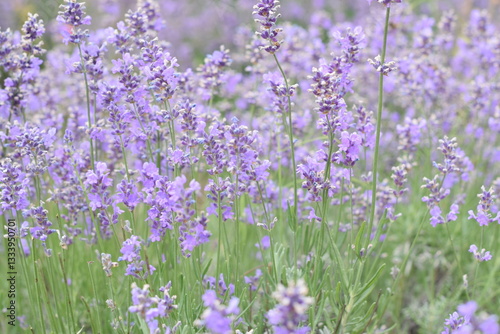 © Kateryna Gorodnytska, Fototapeta premium Macro Shot of Lavender Field with Bees and Bumblebees Pollinating