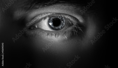 © Vladimir Arndt, Naklejka premium Macro shot of male human eye in black and white toned.