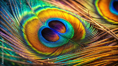© Olga, Obraz premium Macro shot of peacock feather with intricate details
