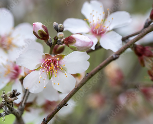 Obraz premium Macro shot of pink white almond tree flowers